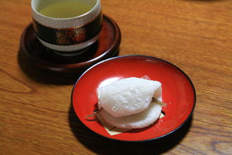親戚の家へ挨拶に行ったとき、出してもらった花びら餅です。