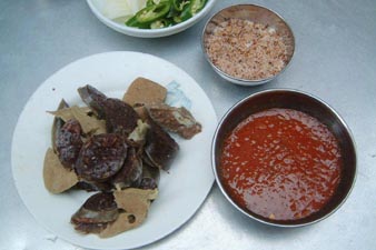 スンデ(腸詰め)も全国的には粗塩が定番ですが、