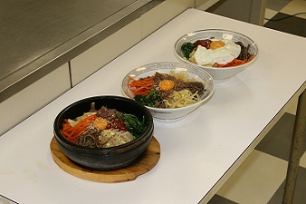 手前が石焼きビビンバ、真ん中と奥は普通のビビンバですが、
