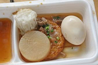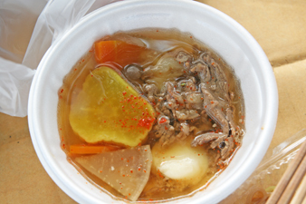 牛肉、大根、ニンジンなどの入った味噌汁に、