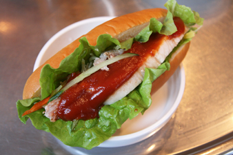 肉厚な豚肉がとろっと溶けるという、斬新なホットドッグでした。