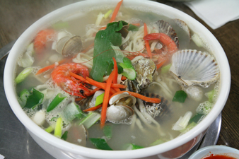 最後の朝食は仁川空港裏手のヘムルカルグクス(海鮮うどん)。