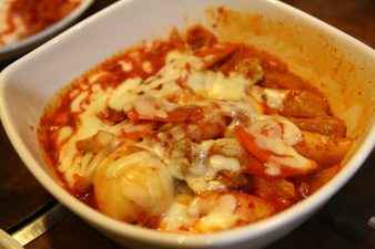 チーズトッポッキ(チーズ入り餅炒め)や、……。