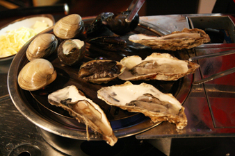 冒頭の写真は、定番の貝焼き盛り合わせ。