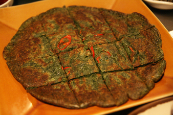 こちらはメセンイ(カプサアオノリ)のチヂミ。