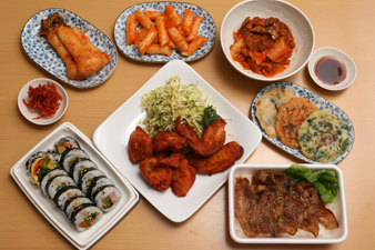 ホットク、トッポッキ、キムパプなど屋台料理をずらり提供。