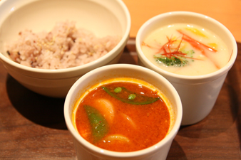 その両者を注文し、五穀米ごはんを加えたのがけなりぃセットです。