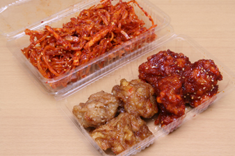 こちらは「コサリ」のヤンニョムチキンと生姜味のチキン。