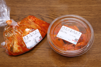 「まだん」では白菜キムチとレンコンのキムチも購入。