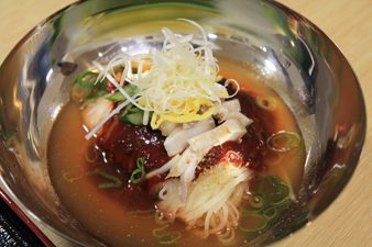 冷麺はすっきりコクのある牛骨ベースのスープが、