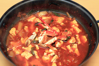 大根、長ネギ、豆腐と一緒に、ケジャンを少なめの水で煮込み、
