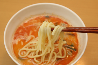 スープも真っ赤ではありませんが、しっかりオレンジ色。