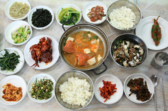 名物のトルゲジャン(イシガニの醤油漬け)定食です。