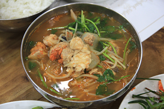 そのまま麗水に泊って、翌朝は麗水水産市場の近くで朝食。