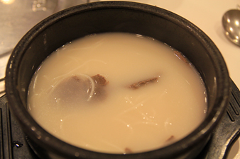 韓方スープで味わう、ハモの湯引き(しゃぶしゃぶ)です。