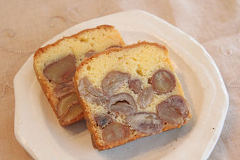 パウンドケーキから今にもあふれ出しそうな栗。