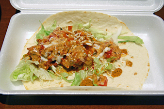 メキシカンタコスに韓国式の肉料理を載せてあります。