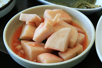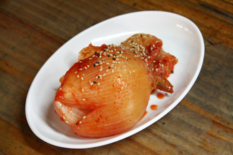 扶安名物のヤンパキムチ(タマネギのキムチ)。
