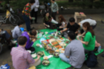 強風で飛んでゆく紙皿や、紙コップを必死に抑えながら、