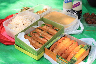 料理もみんなが持ち寄りで。