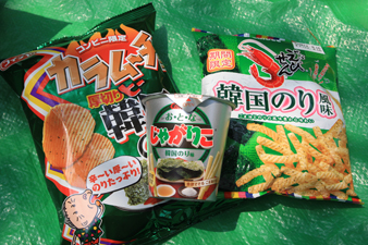 もろもろ限定の韓国海苔味スナック菓子を3種。