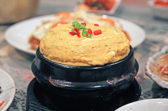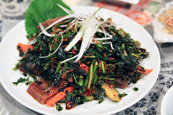 自家製のトトリムクムチム(ドングリの澱粉を固めたムクの和え物)に……。