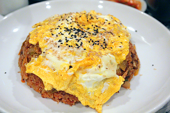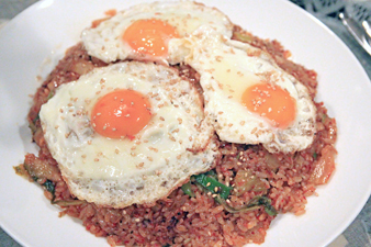 「キムチチャーハン、半熟の目玉焼きを載せて!」