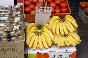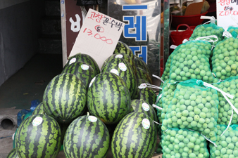 桃、バナナ、スイカはすべてソウルの同じ店で撮ったのですが……。