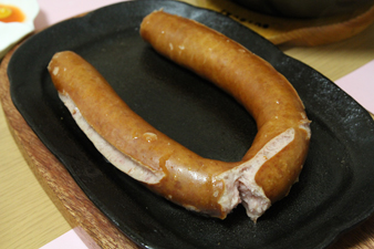 こちらも「パダ食堂」の名物である巨大な牛肉ソーセージ。