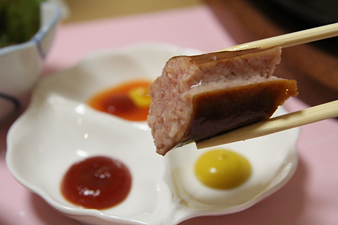 ケチャップかマスタード、あるいはタバスコを加えて味わいます。