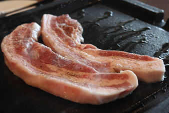 岩手県産岩中豚のサムギョプサル(豚バラ肉の焼肉)。