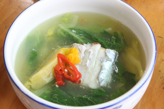 ぶつ切りのタチウオを、白菜、カボチャと煮込んだ料理ですが、