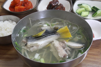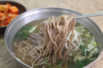 蕎麦粉を使った温かい麺料理で、韓国語でもソバ。