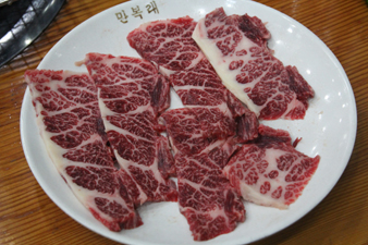 上の写真、霜降りのトゥンシム(ロース)をつつきながら……。