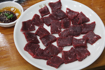 大邱あたりでムンティギと呼ばれる牛刺身の亜種といった雰囲気。