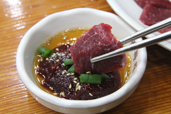 標準語ではユクサシミ(肉刺身)と呼ばれるアレに近いです。