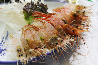 活けのエビをたっぷり刺身にしてもらいました。