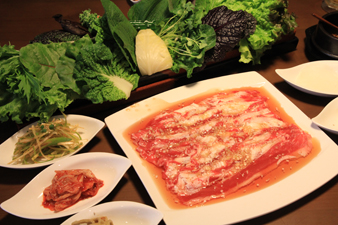 冒頭の写真にあるお肉はウサムギョプ(牛バラ肉の焼肉)。カシス果実を使った特製のソースで味付けがなされています。