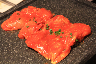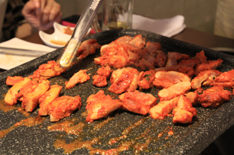 醤油味のBBQチキンと、サムギョプサル(豚バラ肉の焼肉)、
