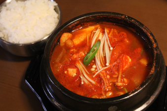食事メニューにスンドゥブチゲ(柔らかい豆腐の鍋)と……。