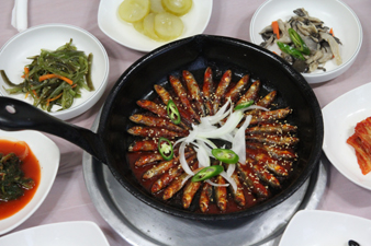 鎮川の名物である花郎飯床(ファランパプサン)。