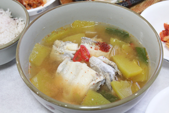 これまた統営名物のカルチホバックッ(タチウオとカボチャのスープ)。