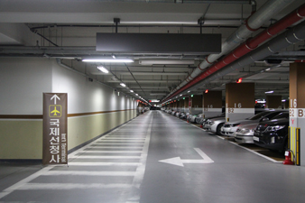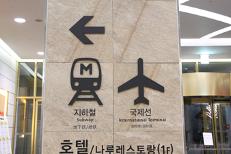 ロッテマートから出て、飛行機マークの案内板に従って進み、