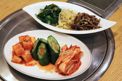 キムチ盛り合わせ、ナムル盛り合わせから始まり……。