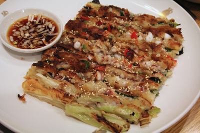 長ネギを使ったボリュームたっぷりの海鮮チヂミ。