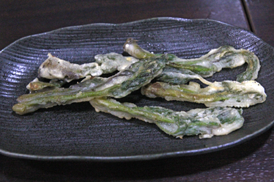 標準語では「オスリナムル」と呼ばれる山菜の天ぷらです。
