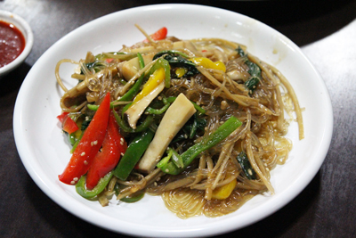 チャプチェ(春雨炒め)に細切りゴボウが入っています。