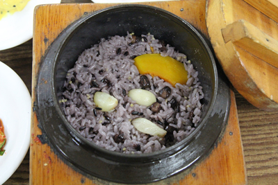 お目当はマヌルソッパプ(ニンニク釜飯)。
