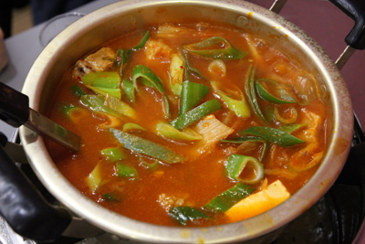 犬鳴豚にキムチチゲ(キムチ鍋、김치찌개)が加わり……。