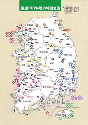 これが地図に落とした108料理の一覧。